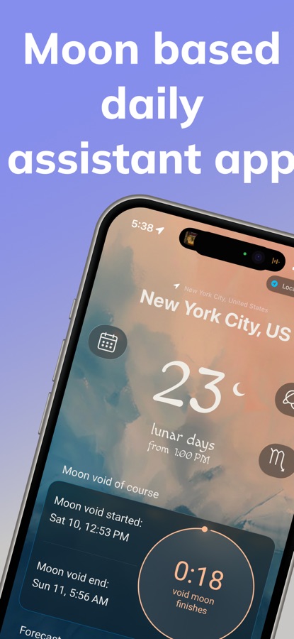 • Отслеживание фаз Луны в реальном времени и позиционирование по зодиаку