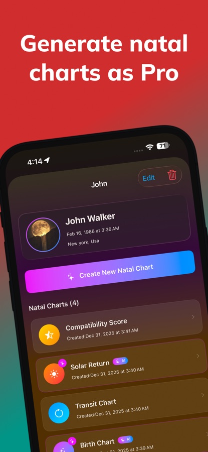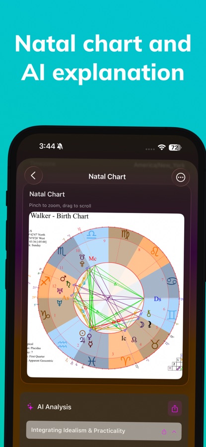 • Создайте полную натальную карту с помощью интеллектуальных интерпретаций ИИ