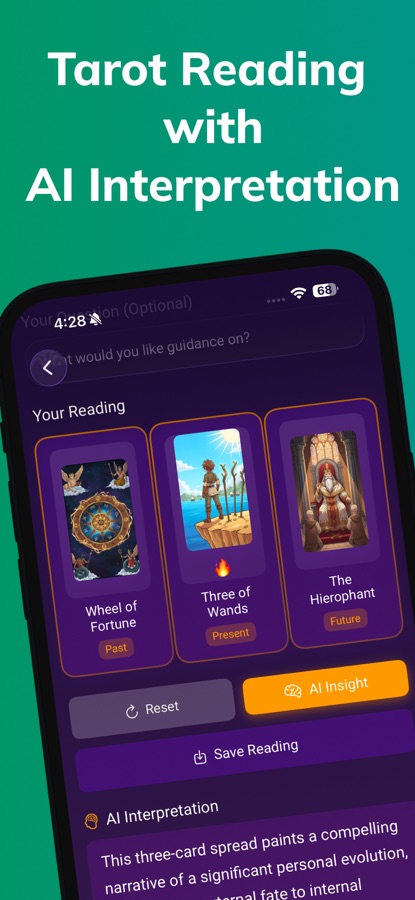 • Изучайте гадания на картах Таро с помощью мудрости, управляемой ИИ