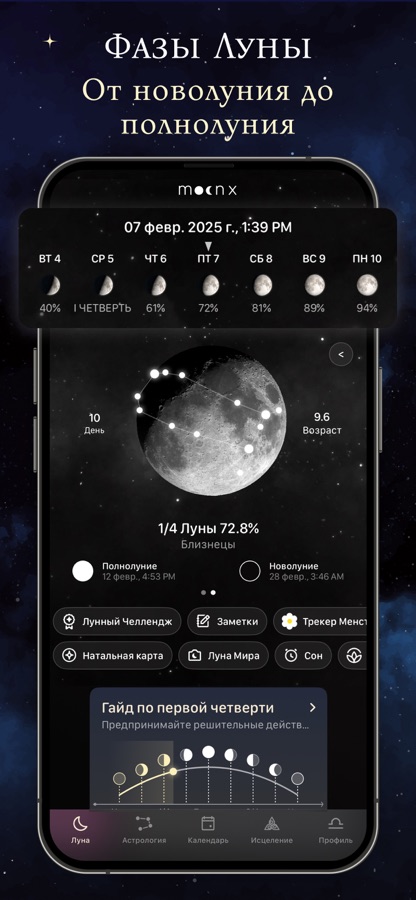 MoonX — это приложение, призванное помочь вам найти простые ответы на сложные вопросы. Если вы черпаете вдохновение в красоте неба над вами, то наше приложение — это то, что вам нужно. Ведь мы неустанно работаем, чтобы предложить вам лучший опыт.