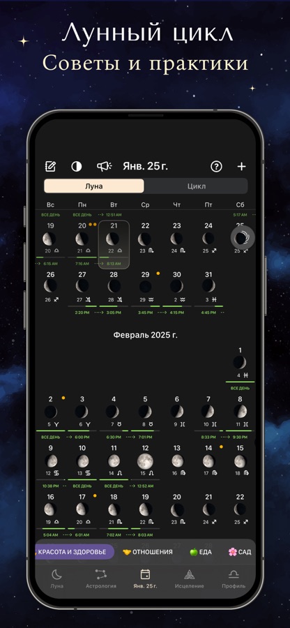 • Лайфстайл календарь с визуальными отметками благоприятных дней;