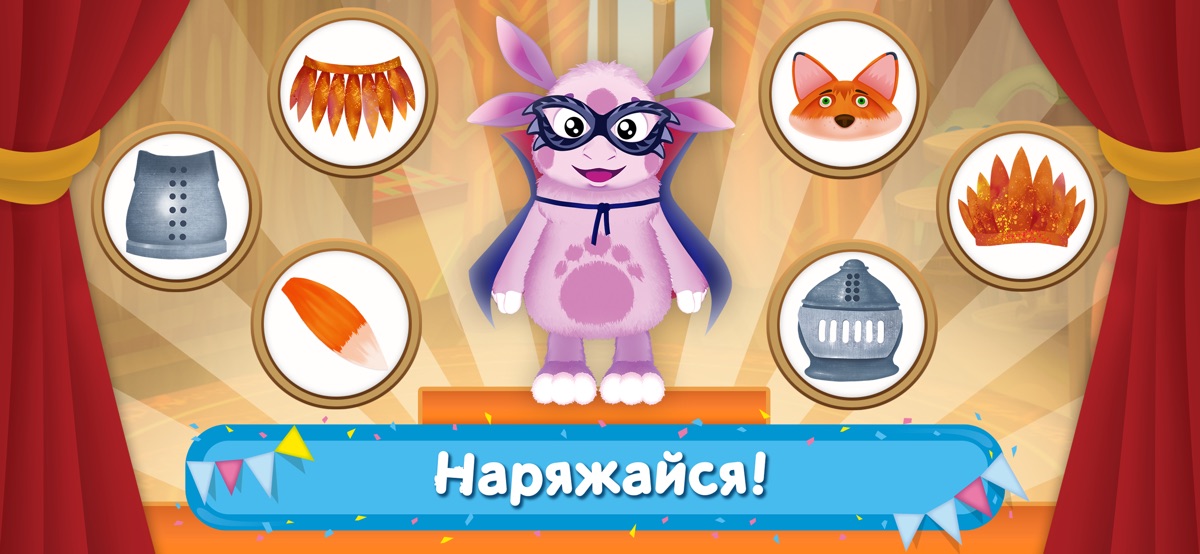 У Лунтика на поляне намечается костюмированный праздник! Он позвал всех своих друзей и тебя тоже! Выбирай самые необычные костюмы и не забудь про маску, это же настоящий карнавал!
