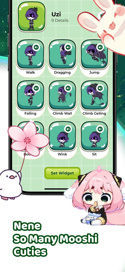 Add some fun to your iPhone with Mooshi, a shimeji-style app that brings adorable animated characters to your screen! Mooshi lets you enjoy playful companions right within the app or on your home screen through widgets.