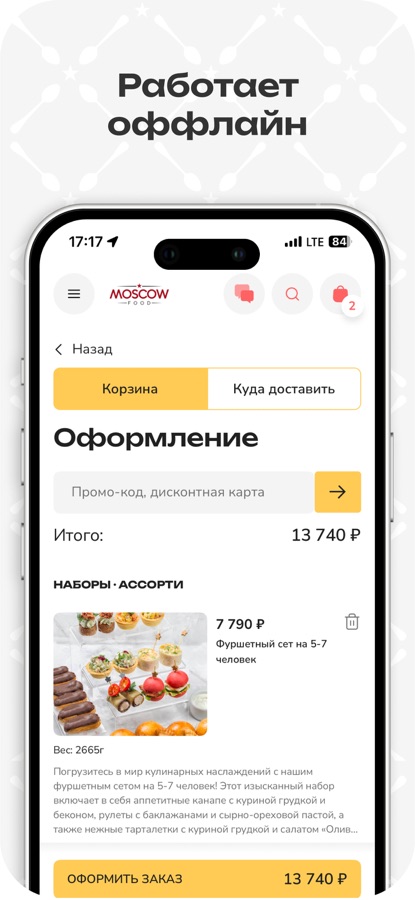 MOSCOW FOOD – ведущий кейтеринговый сервис Москвы, специализирующийся на доставке фуршетных блюд и организацией питания на мероприятиях любого масштаба и формата. В приложение удобно выбрать и сделать заказ на доставку или событийный кейтеринг.