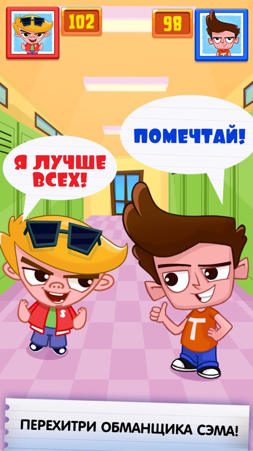 Мошенник Том вернулся с планом мести, и он готов мошенничать до конца школы, до самого выпускного! Быстро спиши у других учеников, пока тебя не поймали! Перехитри всех новых учителей, директора Питерса и учеников-ботанов, чтобы получить больше всего очков и продвинутые уровни игры. Победи Обманщика Сэма, злейшего врага Тома, в эпохальном соперничестве мошенников, чтобы оказаться в числе первых учеников!