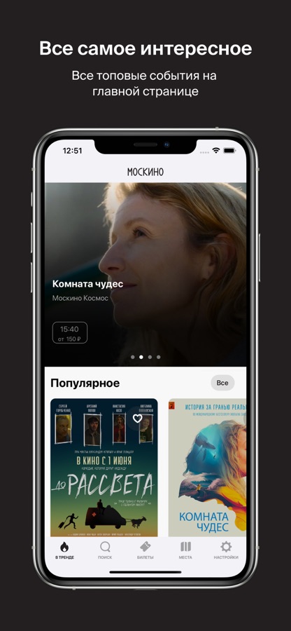 • Приложение сообщит тебе о топовых фильмах в репертуаре кинотеатров с помощью push-уведомления
