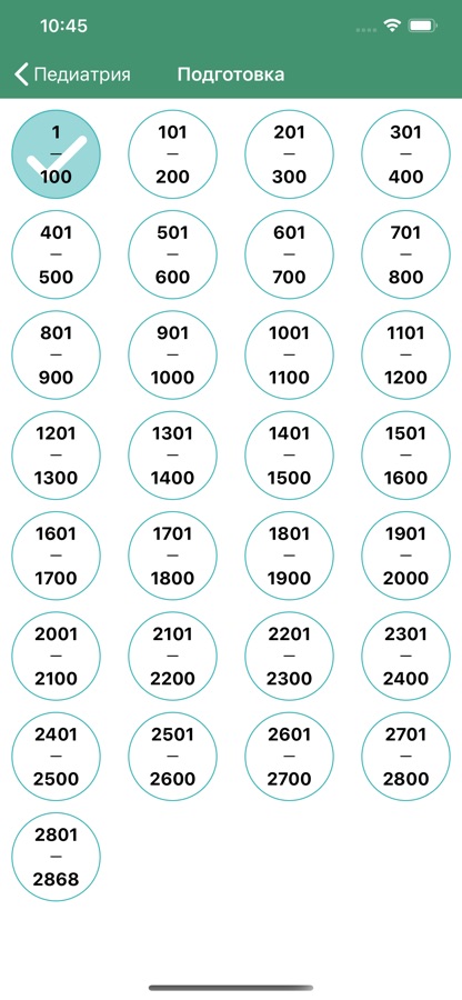 «Подготовка» — общее количество вопросов для удобства разделены на блоки по 100 вопросов. Каждый блок включает в себя следующие подразделы: