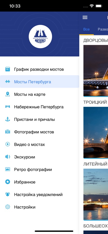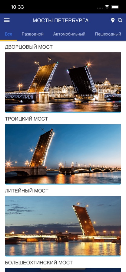 8. Пользователь может посмотреть видео-экскурсии по главным разводным мостам или прослушать аудиогид прямо на мосту со смартфоном в кармане.