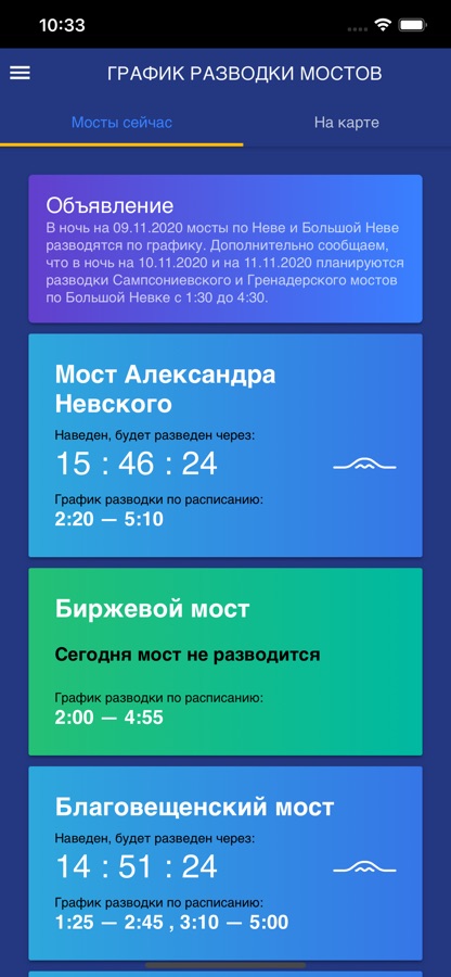 2. Система онлайн-оповещения позволит узнать, открыт мост или закрыт прямо сейчас (например, если мост сводится раньше графика или отменена вторая разводка).