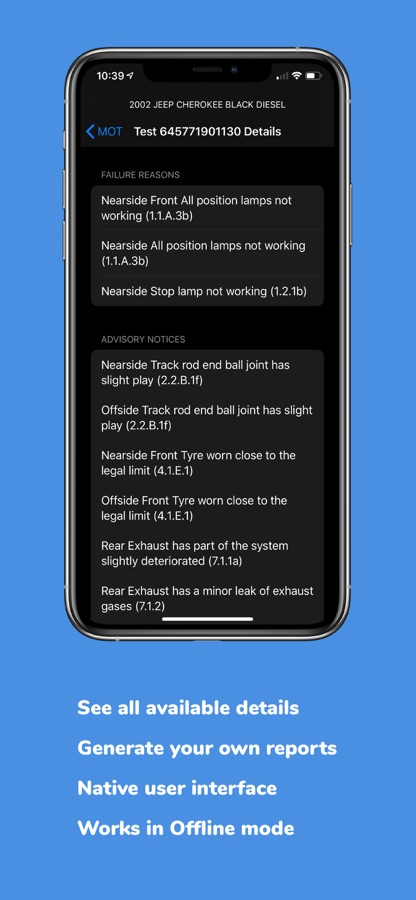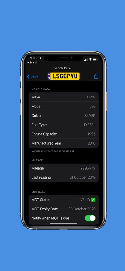 This application will show you MOT details of any vehicle registered in England, Scotland or Wales.
