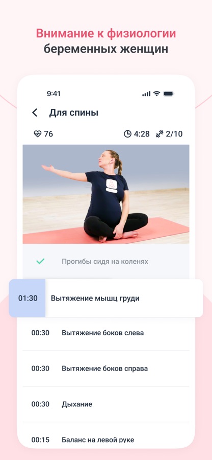 • Отдельные комплексы упражнений для каждого триместра, включая гимнастику для ранних сроков (до 8 недели).