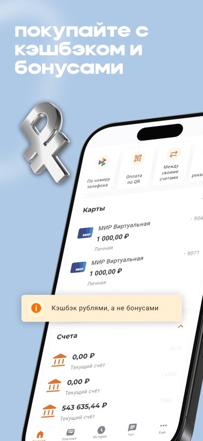 Платите виртуальной картой МИР и получайте кэшбэк рублями. Настоящими. Без баллов и сроков годности.
