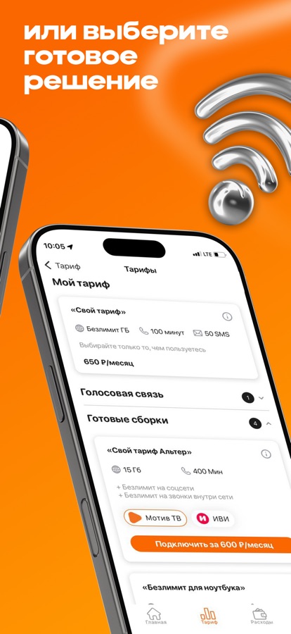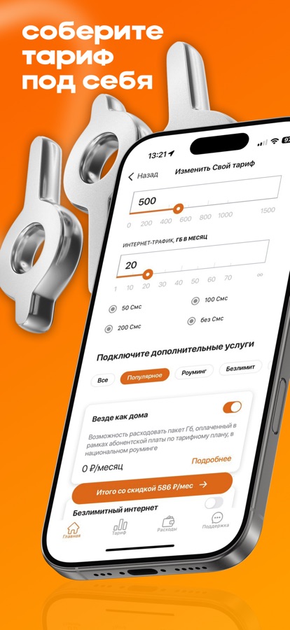 • Настраивайте «Свой тариф»: выберите, что нужно именно Вам — минуты, Гб, подписки и безлимитные опции.