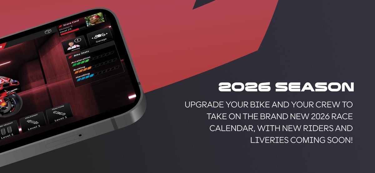 MotoGP Racing 25/26 уже доступно! С совершенно новой, современной системой меню, новейшими дизайнами мотоциклов и раскрасками, а также обновлениями трасс, любимая вами игра получила масштабную переработку в преддверии предстоящего сезона!