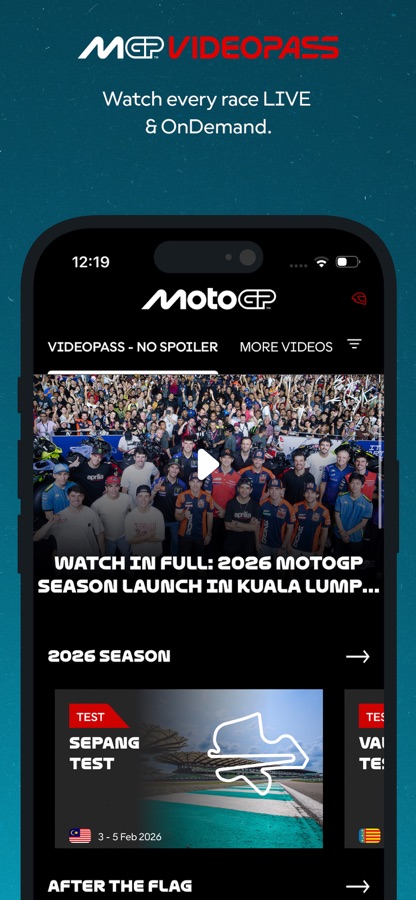 • Watch every race LIVE & OnDemand (VideoPass subscription)