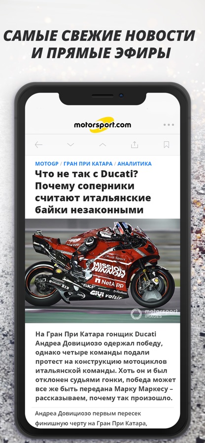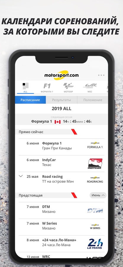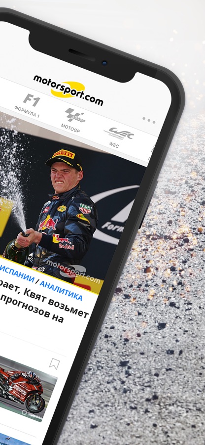 Лучший способ узнавать о событиях в мире авто- и мотоспорта — официальное приложение Motorsport.com с информацией о Формуле 1, MotoGP, Формуле Е, NASCAR, IndyCar, WEC, WRC, Формуле 2 и Формуле 3, WRX, DTM, WSBK, Moto2 и Moto3 в одном уникальном, но простом в использовании приложении. Скачайте бесплатно прямо сейчас!