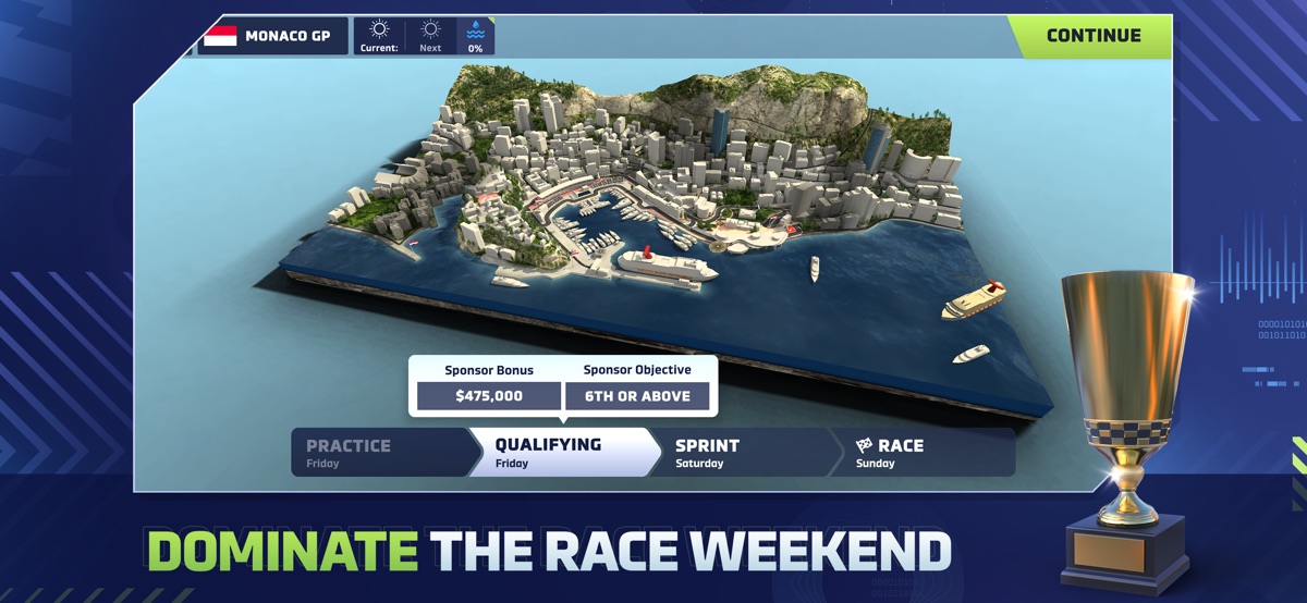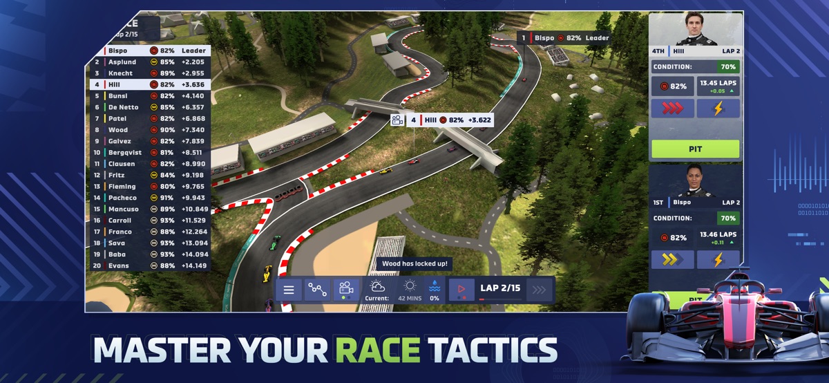 Experience the adrenaline-pumping action of races in real-time or navigate through intricate strategy screens. Swiftly adapt to ever-changing weather, unexpected crashes, and the emergence of safety cars.