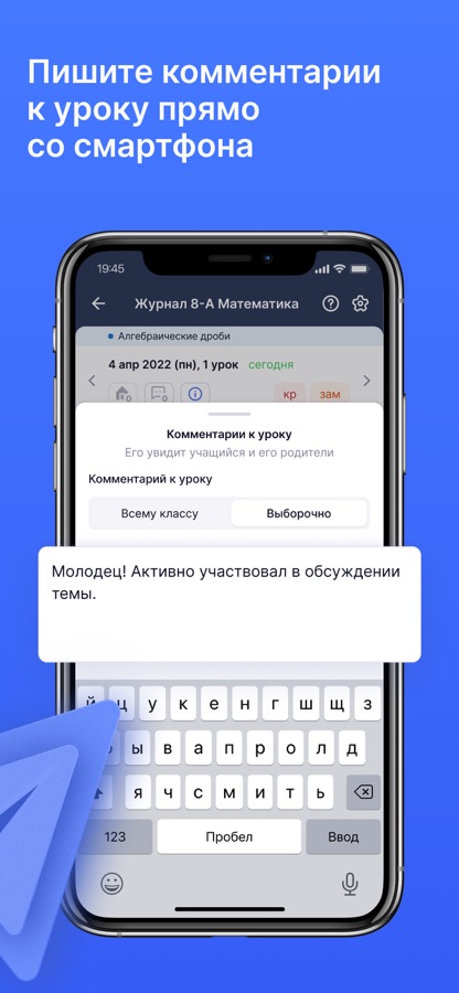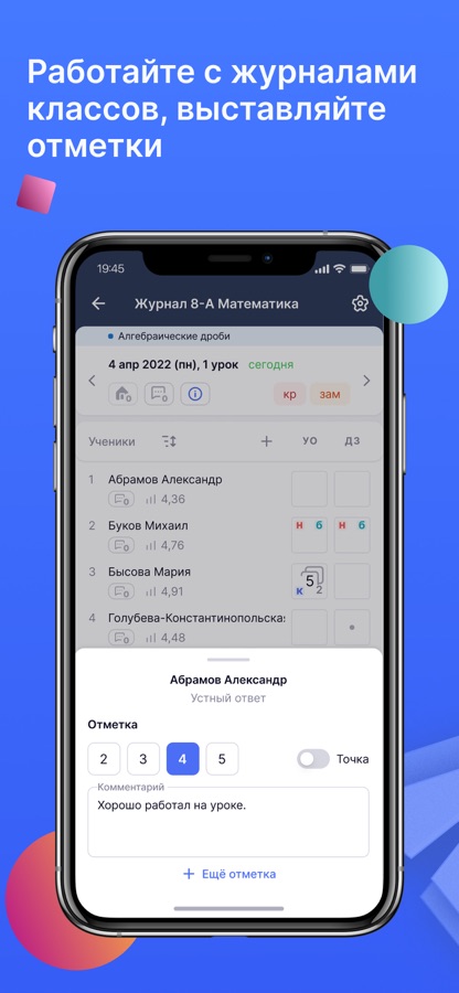 • Работать с журналом класса, оперативно вносить данные об успеваемости и комментарии к оценкам;
