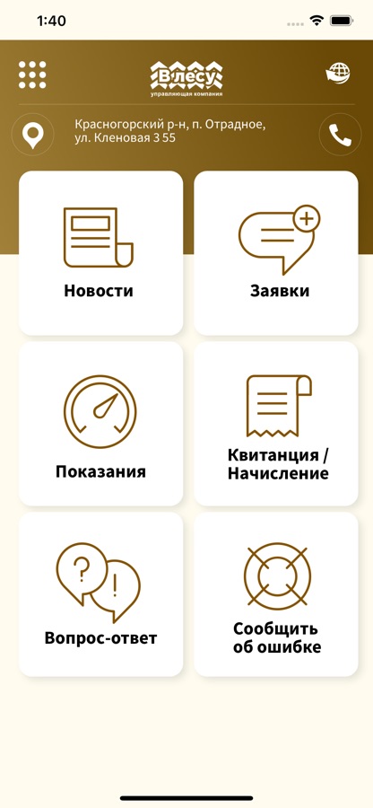 — Возможность позвонить в УК из приложения;