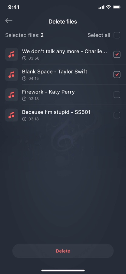 — Найти всю музыку, аудио файлы, хранящиеся в памяти телефона и SD-карты.