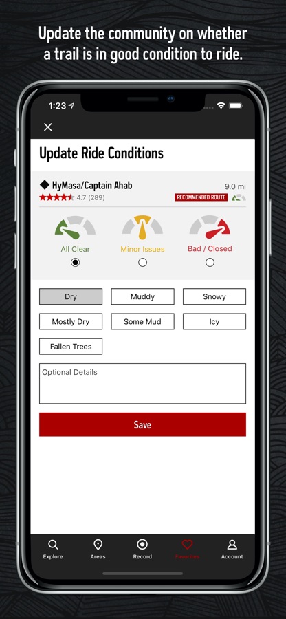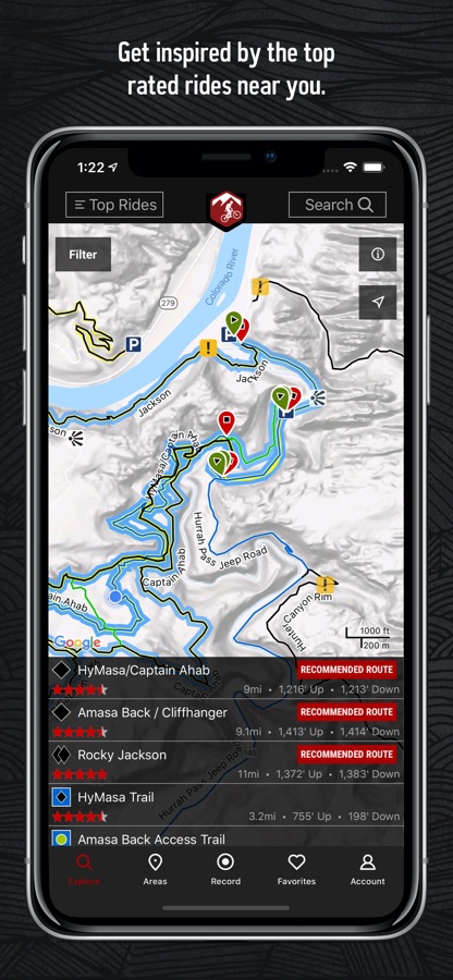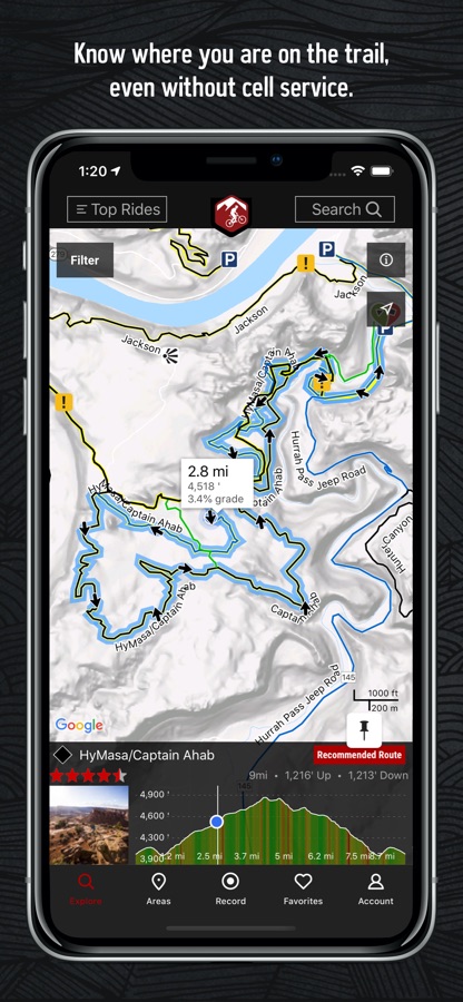 • Downloaded trails work offline for when you’re off the grid. (No cell reception required!)