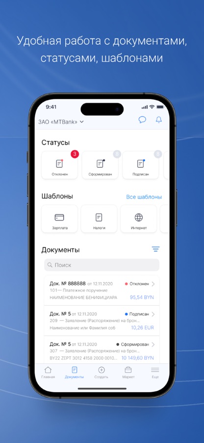 1. Удобная работа с документами, статусами и шаблонами:
