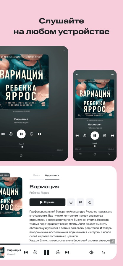 Читайте, слушайте, переключайтесь между форматами — так, как удобно именно вам.