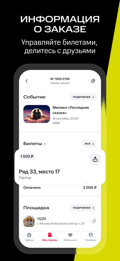 Ваши билеты всегда под рукой — они надёжно хранятся в разделе «Мои заказы».