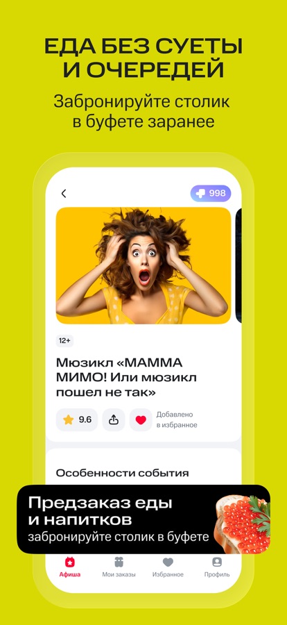 Забудьте о спешке и очередях во время антракта — закажите еду и напитки заранее.