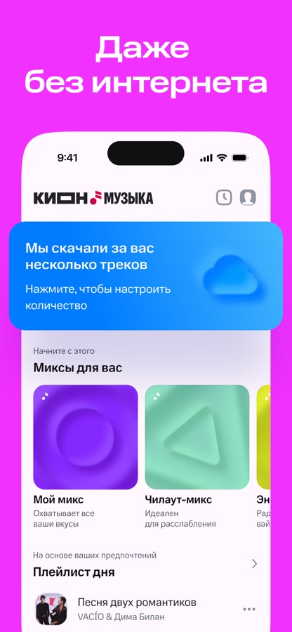 Что такое музыка оффлайн? Это возможность загрузить любимые треки на телефон и слушать их в любом месте и в любое время. Твоя музыка теперь есть у тебя в телефоне без доступа к интернету. Оффлайн режим позволяет вам слушать музыку в любое время и в любом месте! Вы можете скачать музыку на смартфон и слушать без интернета. Скачивание музыки на телефон доступно пользователям с подпиской на приложение. Слушать музыку бесплатно или с подпиской без ограничений. Музыка оффлайн бесплатно или с подпиской без ограничений доступна в приложении КИОН Музыка. Оффлайн музыка — это преимущество, которым точно стоит пользоваться.