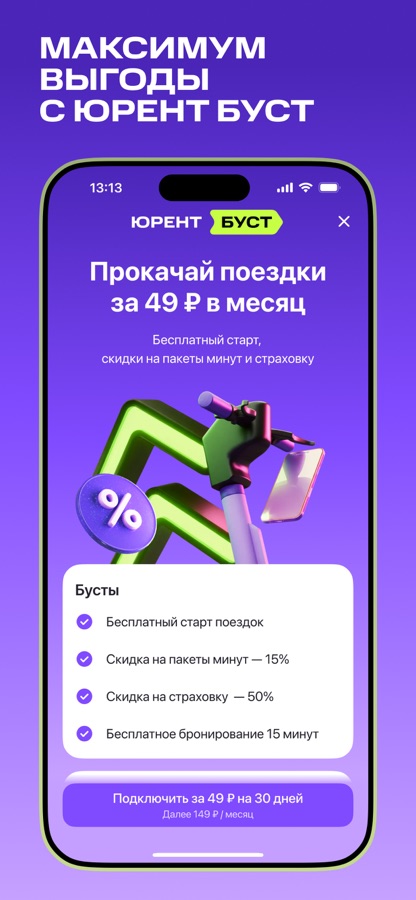 Получите бесплатный старт аренды самокатов и велосипедов, скидку на пакеты минут и страховку.