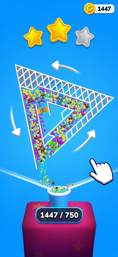 Шарики будут отскакивать и попадать в стакан. Чтобы заполнить его целиком, шарики можно умножать.