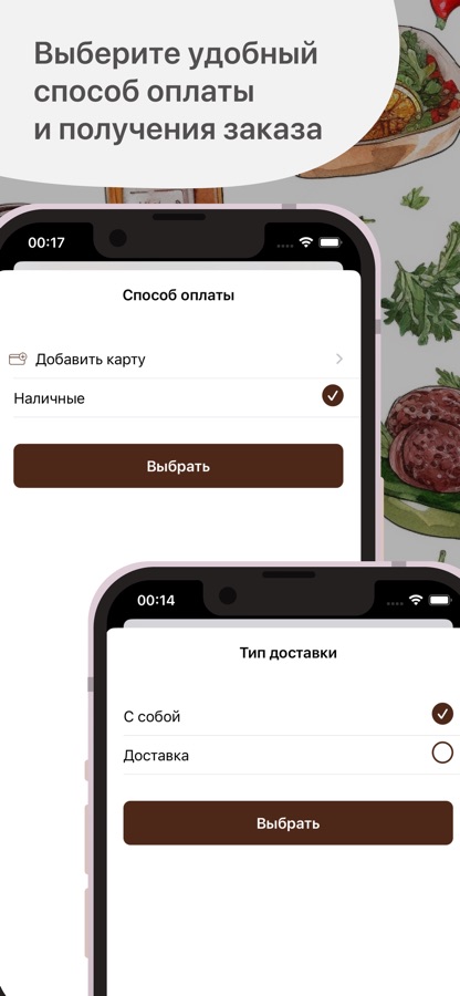Укажите время, когда хотите прийти за своим заказом или выберите доставку с указанием времени и адреса доставки.