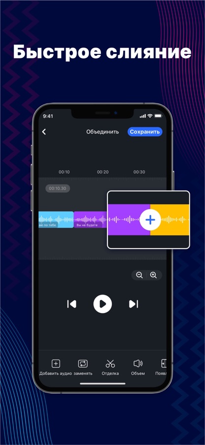 Объединяйте несколько музыкальных клипов, даже в разных форматах.