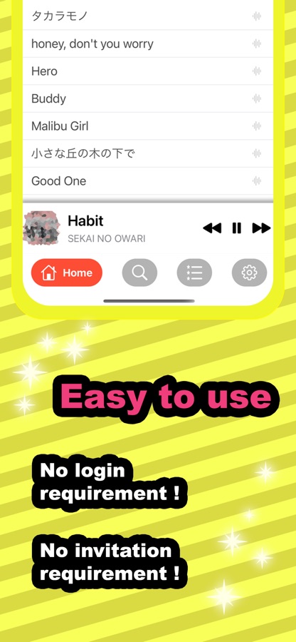 It is an easy-to-use music app for various purposes such as music, video, PV, promo, MusicHD, album, CD, single, karaoke practice, etc.!