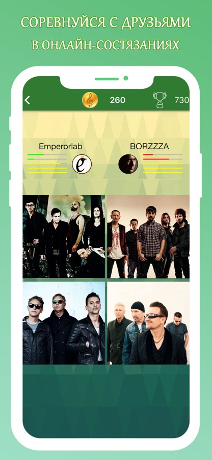 Каждый музыкальный фрагмент сопровождают 4 картинки – постеры знаменитых исполнителей. Слушай внимательно – и выбирай подходящее фото.
