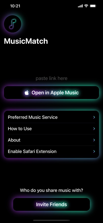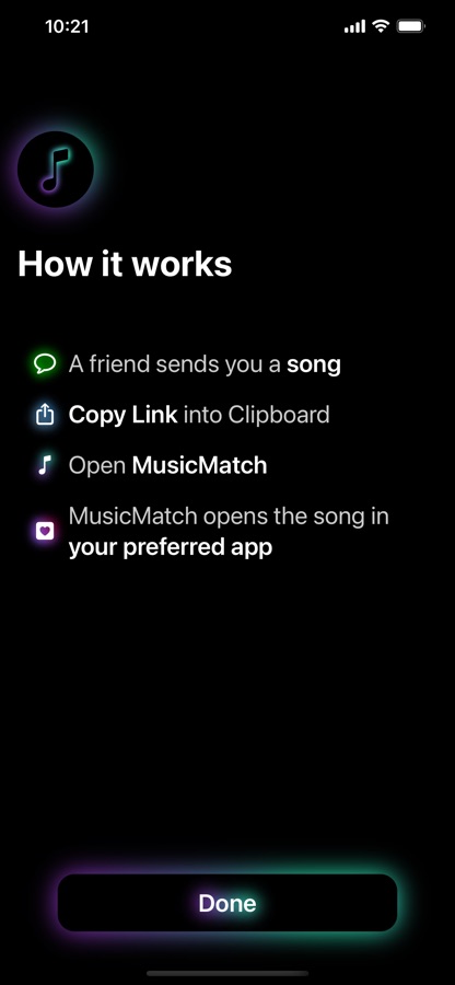 Music is best when shared. With MusicMatch, friends can share and open music links even if they use different streaming services, like Spotify and Apple Music.