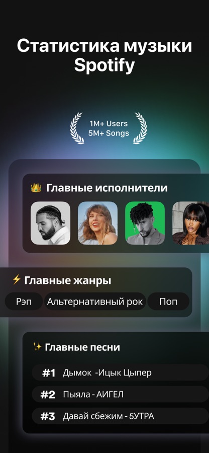 — Персональная статистика по каждой композиции, каждому исполнителю и альбому в Spotify.