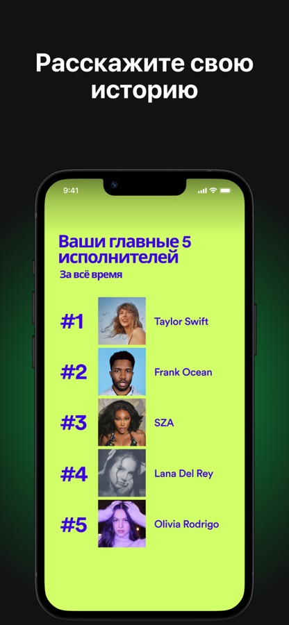 — История потокового прослушивания композиций, исполнителей и альбомов в Spotify за всё время.