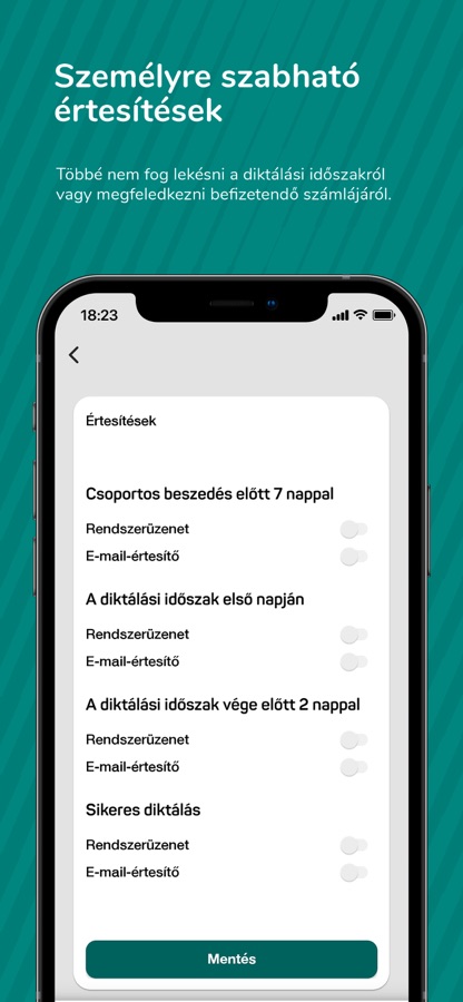 — Értesítést kérhet új számláról, diktálási időszakról.