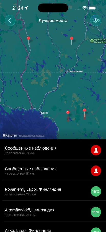 — Бесплатные уведомления при ожидаемо высокой активности полярных сияний.