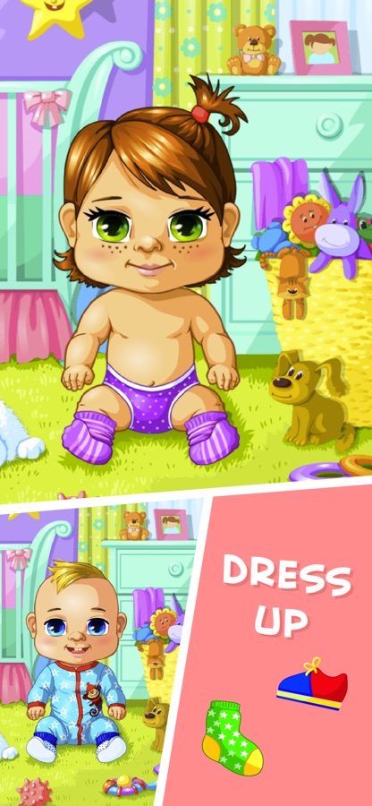 Очаровательные малыши уже не являются новорожденными, их мамы и папы поручили вам заботу о них в течение дня. Малыши играют в интерактивной игровой комнате и жаждут вашего внимания. Порадуйте этих милых деток различными мероприятиями по уходу в 7 милых сценах, таких как веселое купание, чистка зубов щеткой с пеной, смена подгузников, модная одежда, вкусная еда, красивый сон и веселая игра.