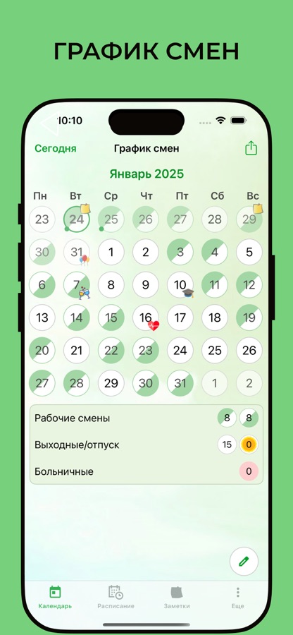 Управляйте своим рабочим временем с «Мой календарь — график смен!