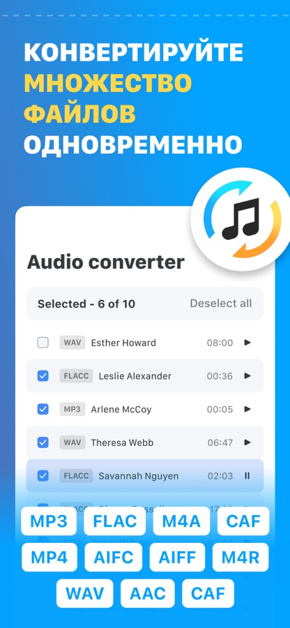— Большой выбор форматов — mp3, mp4, wav, flac, aiff, aac, m4a и другие;
