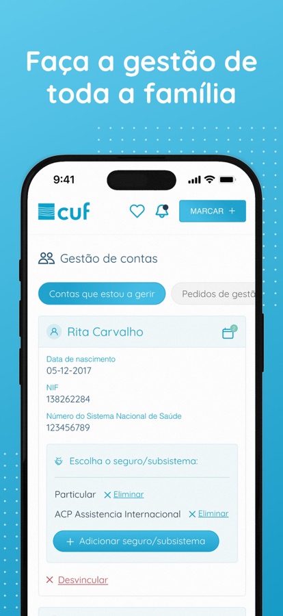 — Gerir a conta dos elementos da sua família ou de terceiros associados a si;