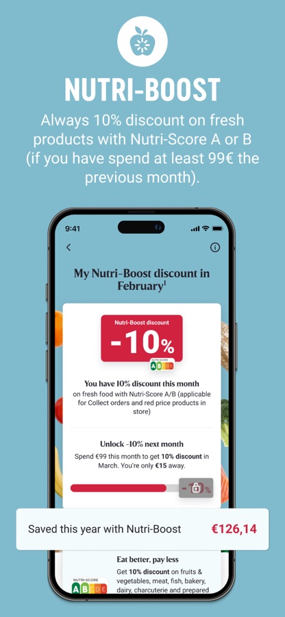 Discount on a large range of fresh products with Nutri-Score A or B thanks to Nutri-Boost.