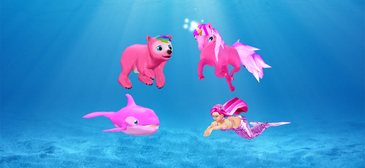 Собирай монеты, плавая и ныряя в бассейне, и покупай на них новые предметы. Никогда не приходилось видеть дельфина, переодетого в принцессу или в участницу группы поддержки? А в фею или в невесту? Здесь огромный выбор великолепных нарядов, в которых твой новый лучший друг-дельфин будет отлично выглядеть. Можно даже выбирать новых животных и других персонажей, таких как косатка, акула, русалка или даже единорог! Более чем 40 различных персонажей станут источником бесконечного веселья!