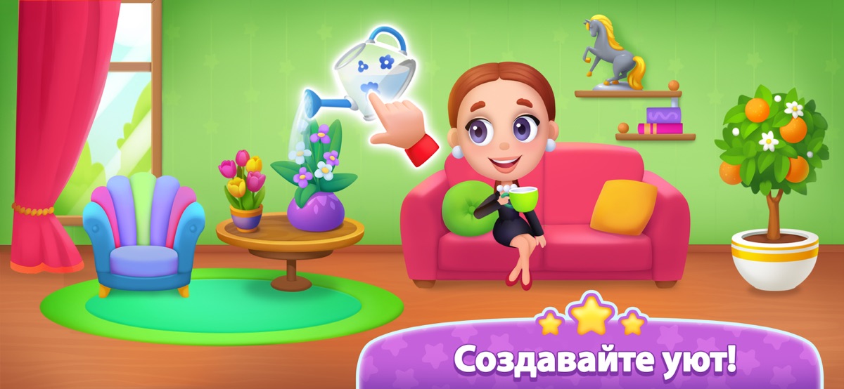 3. Развивайтесь: Завершайте задания и увеличивайте уровень удовлетворения гостей. Чем счастливее гости, тем больше вы получаете возможностей! Зарабатывайте дополнительные предметы декора и даже открывайте новые комнаты.