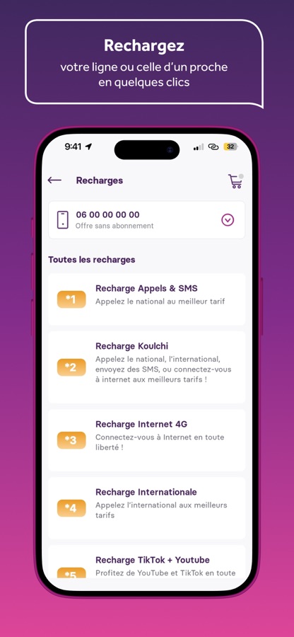 — Rechargez votre ligne ou celle d’un proche en toute sécurité avec votre carte bancaire ou votre carte de recharge et reportez le paiement de votre facture.