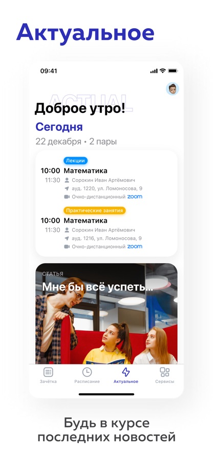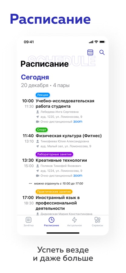 С его помощью ты сможешь следить за персональным расписанием, оценками, баллами, актуальными новостями, подавать электронные заявки и входить в корпуса.